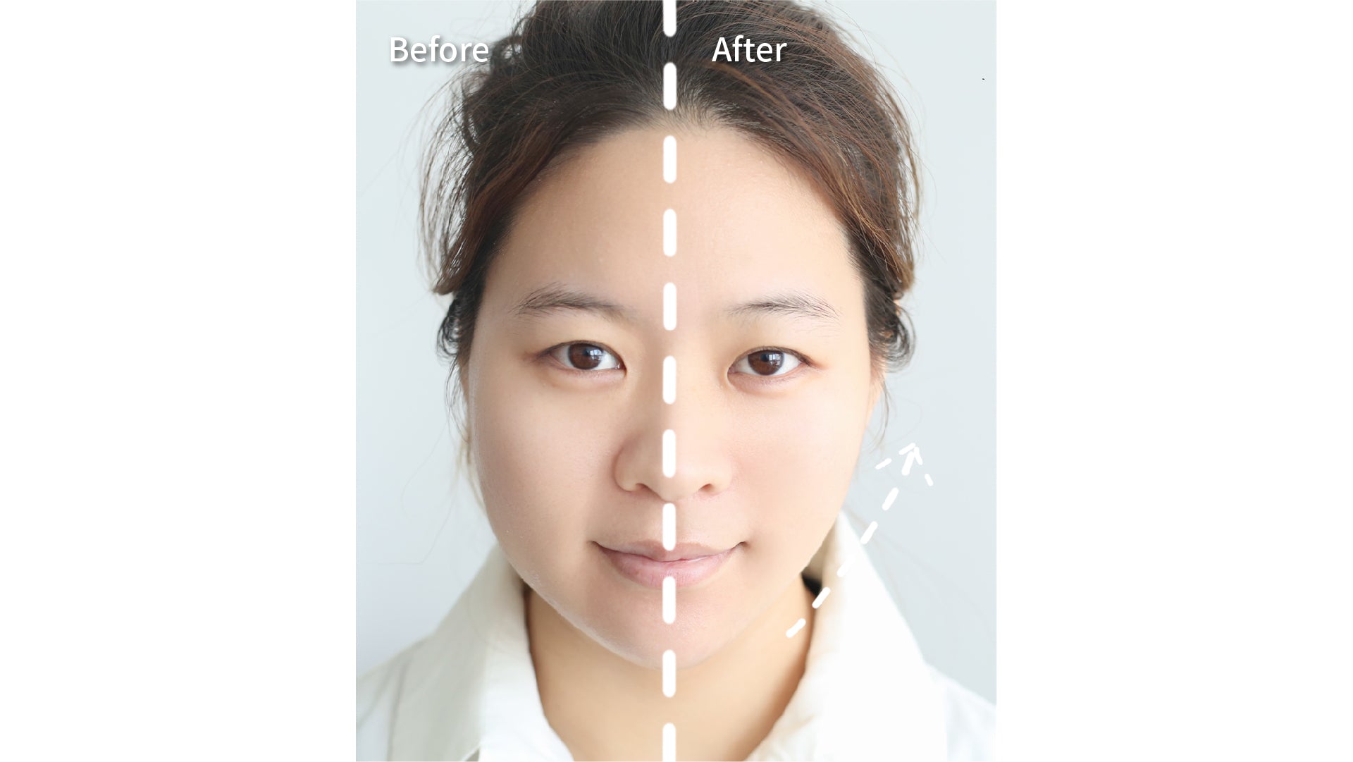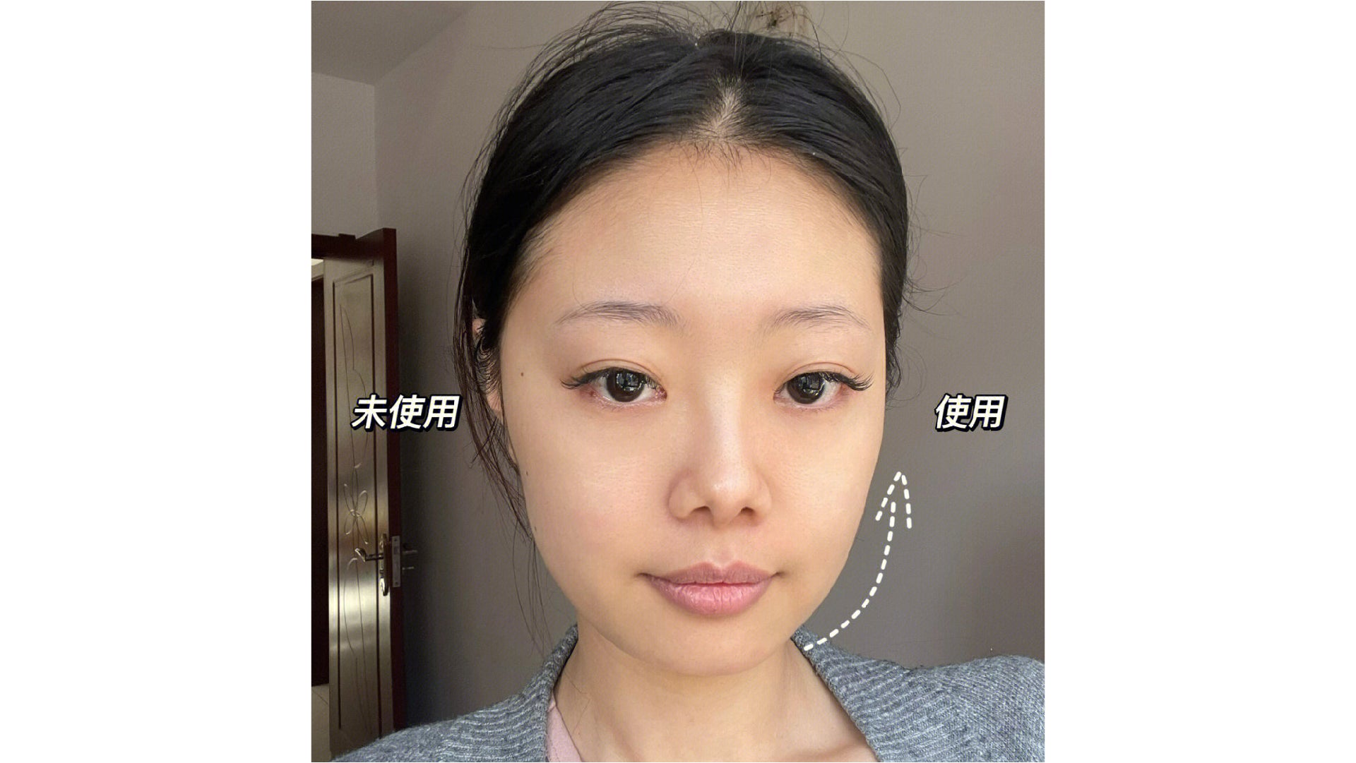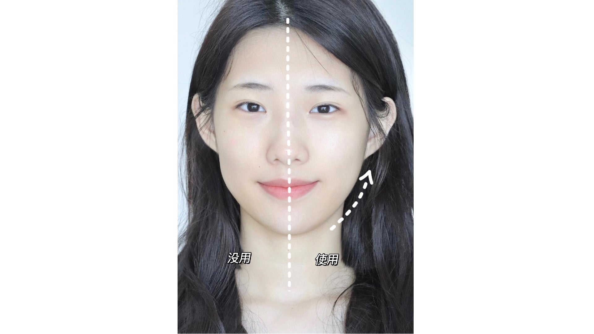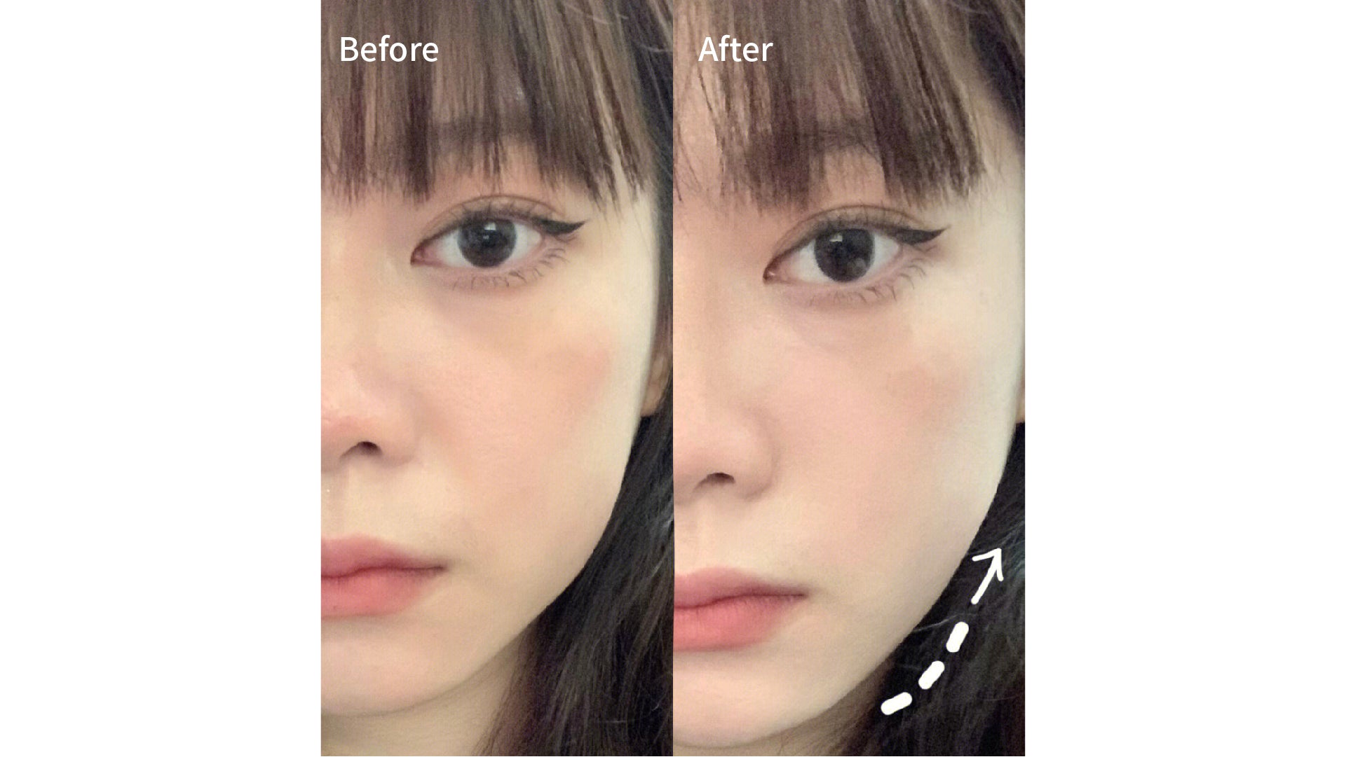 與臉的另一側對比,可以看到皮膚和下巴輪廓明顯拉提。再另一半邊臉按壓噴霧 3-5 次完成整張臉保養。