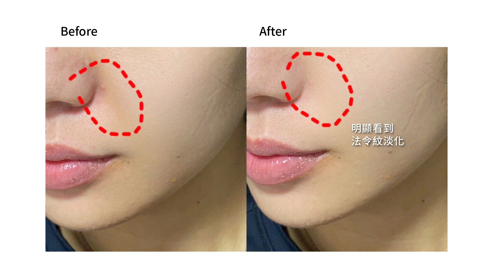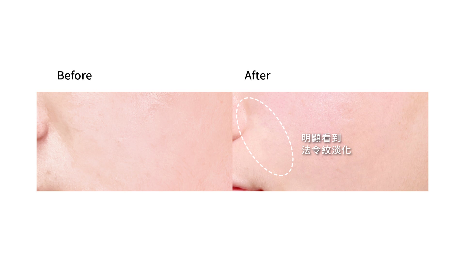 參與者在使用產品後 30 秒內皺紋明顯淡化、減少。