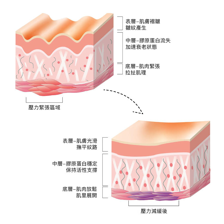 精氨酸赖氨酸多肽,舒緩肌膚壓力,強化肌膚達到緊緻放鬆保養的效果,並協助淡化皺紋與幫助蘋果肌膨彈